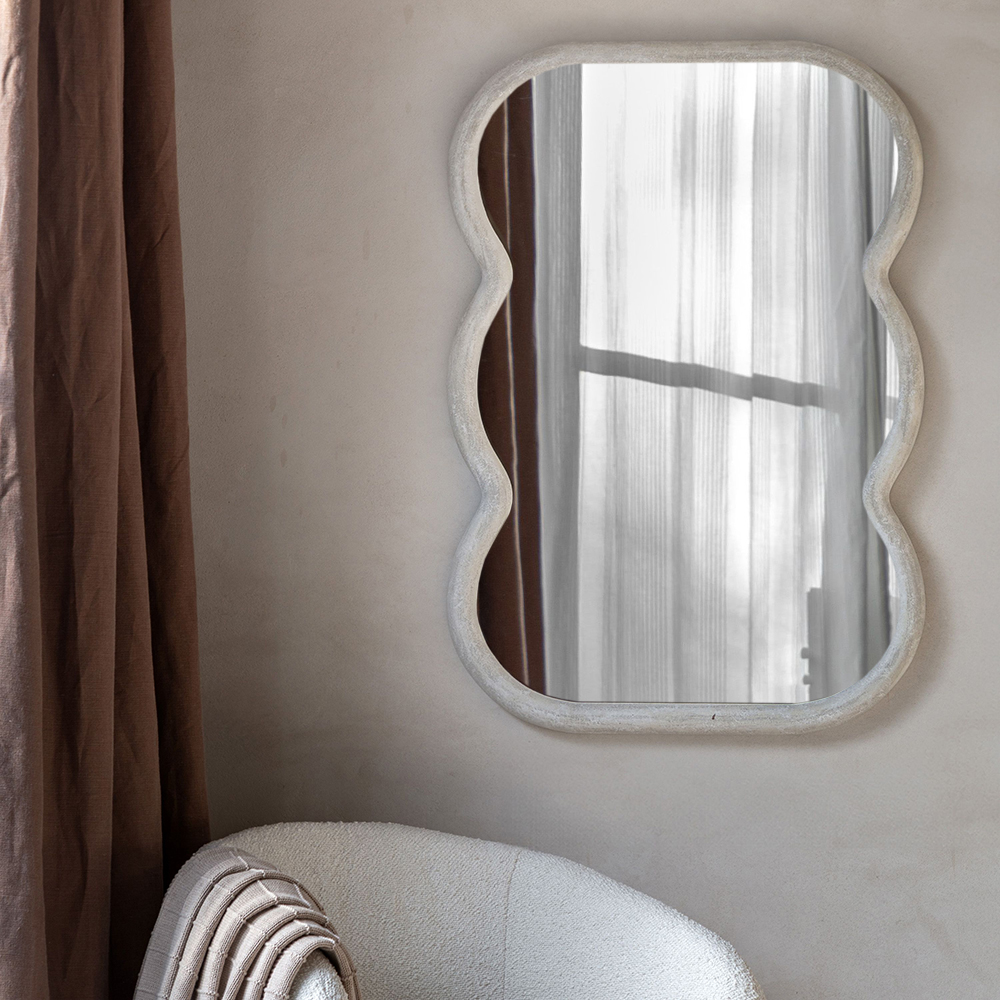 Be the first to review “Cromer Wavy Curved White Modern Wall Mirror 90cm x 62cm”