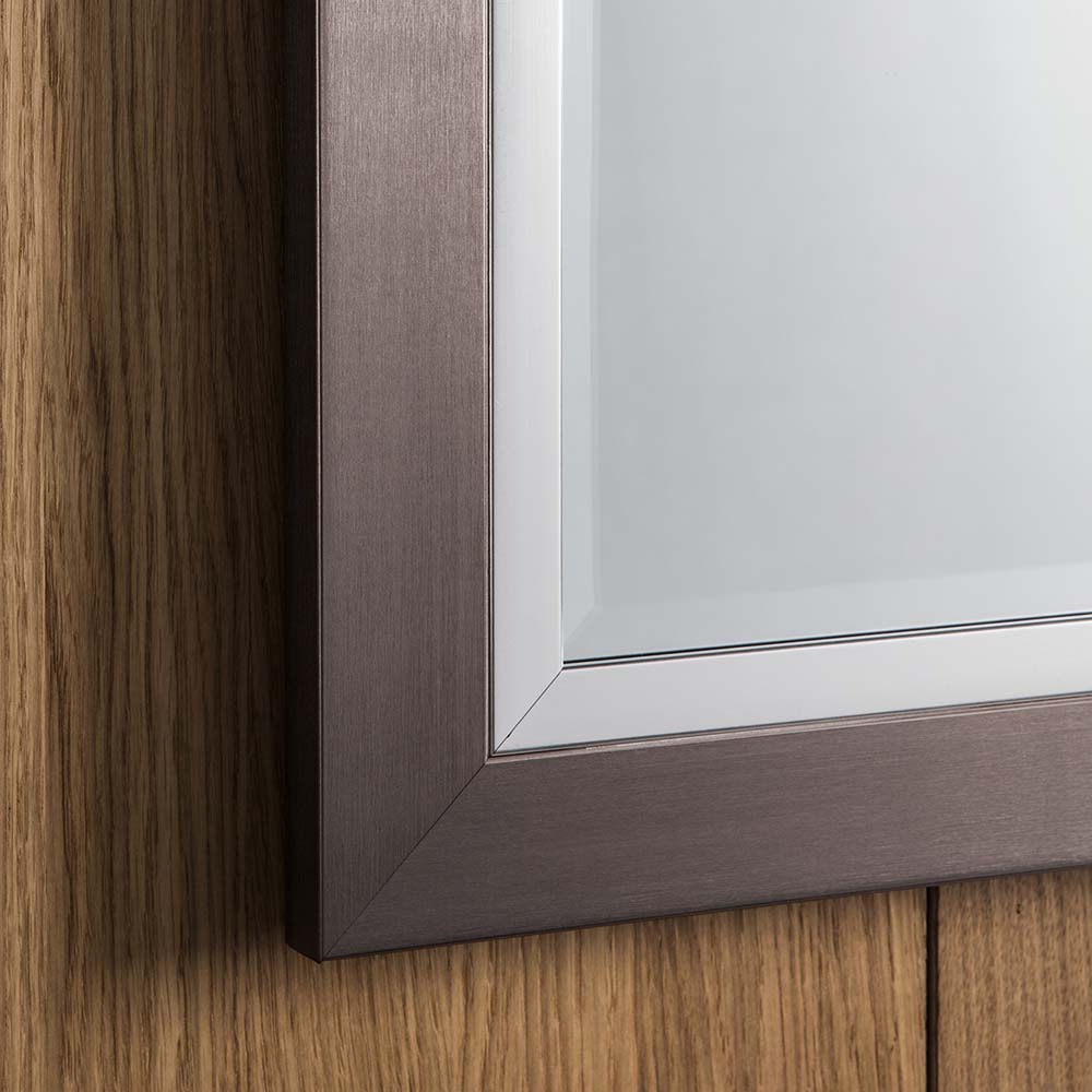 Wide, Modern frame design with a two tone finish of brushed metal and chrome effect.